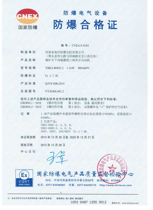 a.有防爆標志和防爆合格證編號,并與YBK3防爆電機的使用場所要求一致;