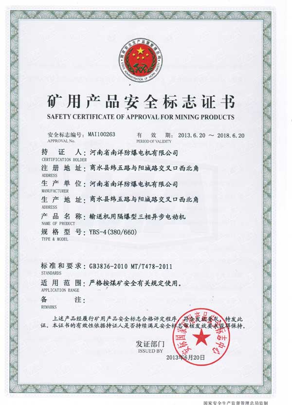 輸送機防爆電機主要用于煤礦井下的皮帶輸送機,刮板輸送機等配套電機,機座由鋼板焊接成形,風(fēng)罩,接線盒,絕緣結(jié)構(gòu)采取加強措施,防止碎石墜落砸傷電機,已適應(yīng)煤礦井下的復(fù)雜環(huán)境。防爆性能符合GB3836.1《爆炸性環(huán)境用防爆電氣設(shè)備 通用要求》和GB3836.2《爆炸性環(huán)境用防爆電氣設(shè)備隔爆性電氣設(shè)備d》的規(guī)定,適用于煤礦井下具有可燃性氣體或煤塵與空氣形成爆炸性氣體環(huán)境的場所,防爆標志為ExdI Mb。